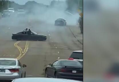 Watch Reckless Drivers Block Traffic While Doing Donuts Hanging Out Windows With Guns
